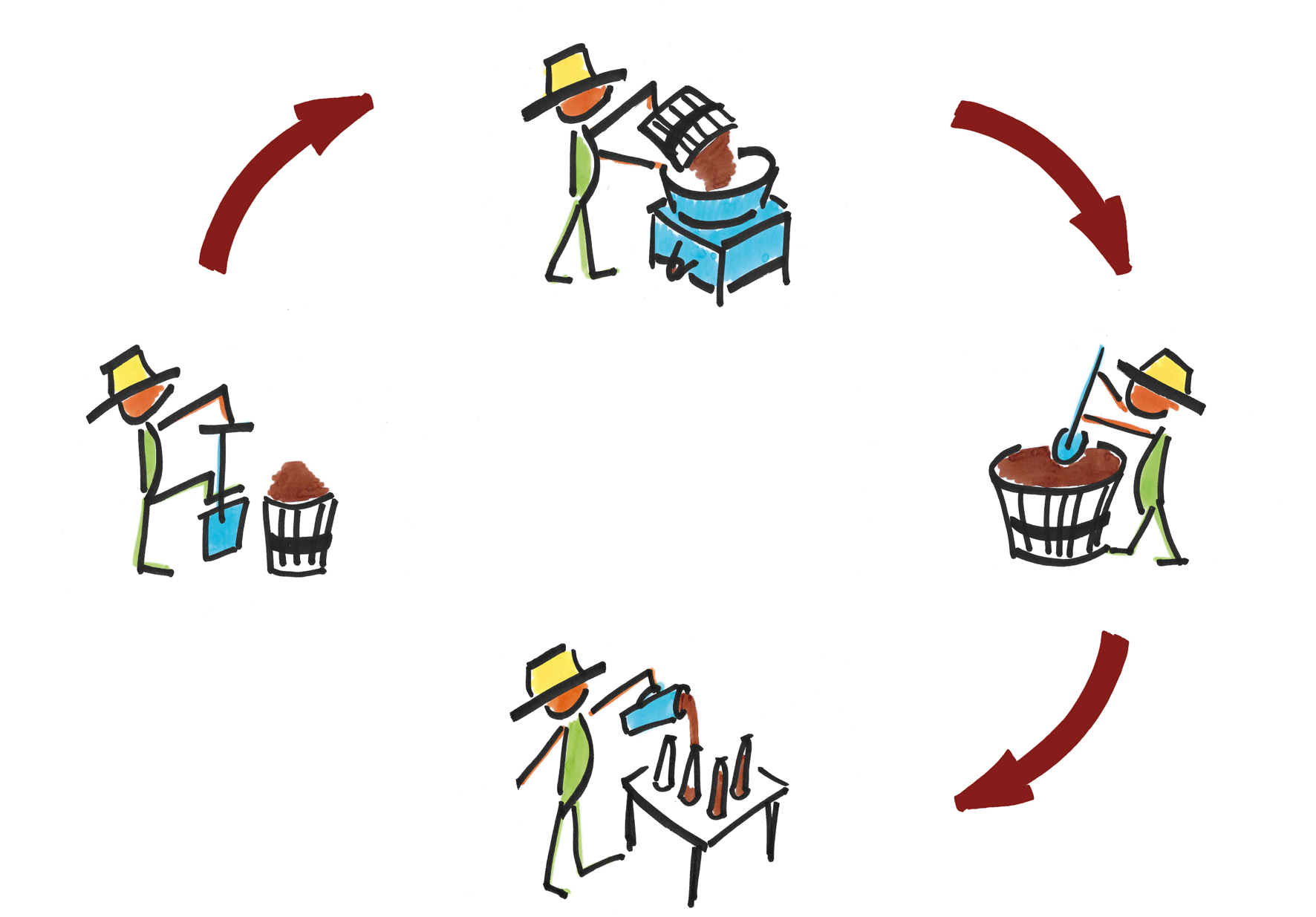 ![]() Die Arbeitsschritte in der Salzburger Alpenmoor-Manufaktur: Moor stechen, mahlen, anrühren und abfüllen. |